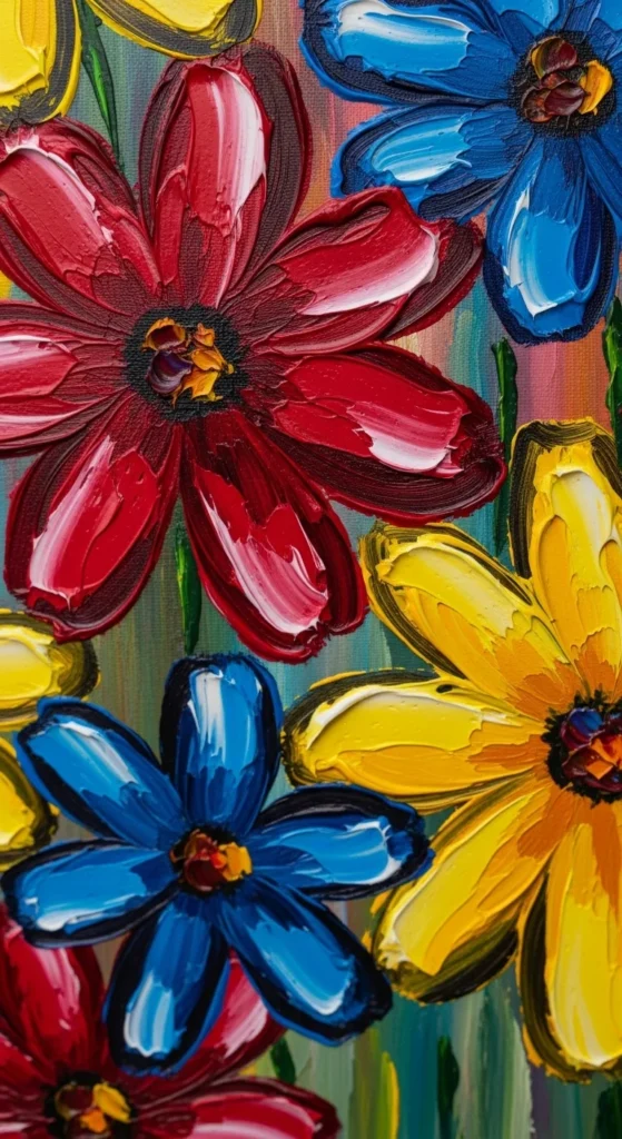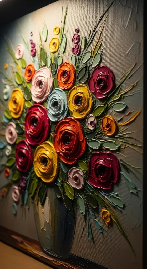 Sculpt petals and leaves using the edge of a palette knife. Layer colors for dimension and realism. This method gives your flowers an impasto, almost sculptural feel. Beginners can experiment freely without worrying about mistakes. These textured canvases work beautifully as focal points or grouped in a gallery arrangement.