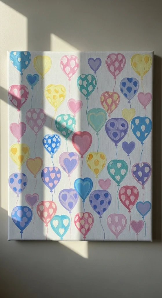 Use string or stencil outlines to form heart and balloon clusters. Fill in shapes with dots for a layered look. It’s fun, playful, and beginner-friendly. This technique is perfect for seasonal décor or children’s rooms. The finished canvas adds a cheerful, lighthearted accent to any wall.