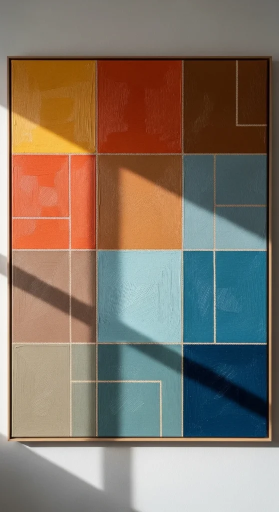 Creating a grid is simple with painter’s tape and careful planning. Paint each square or rectangle in different shades for a dynamic effect. Remove the tape once dry to reveal sharp lines. Grids add a sense of order to abstract compositions and look professional without needing advanced skills. Perfect for living rooms, offices, or as a gallery wall centerpiece.