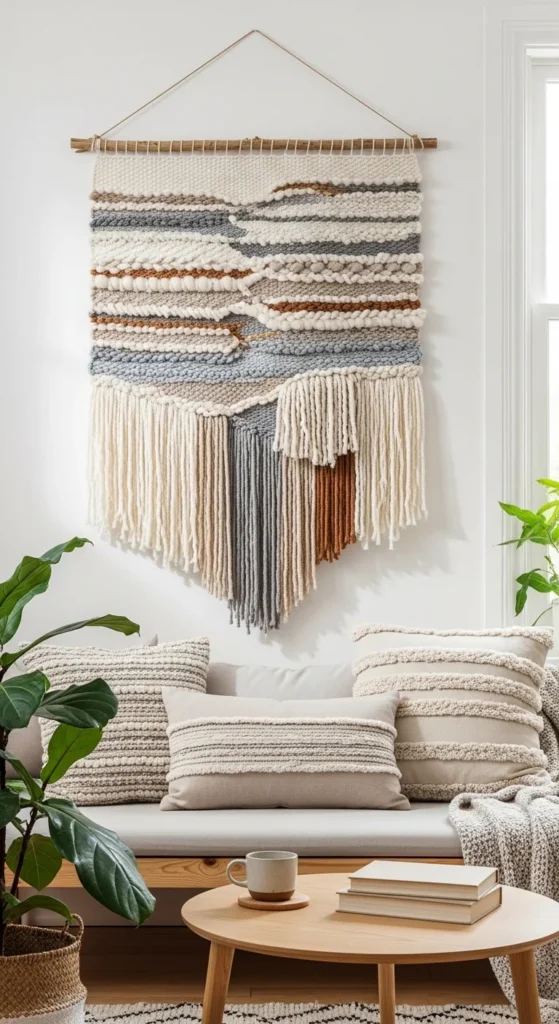 Weave leftover fabric strips with yarn to create stunning wall hangings. Use a simple loom or even a cardboard base for beginners. The layers and textures give walls depth and warmth. This DIY is affordable, customizable, and renter-friendly. A perfect statement piece that showcases creativity while using scraps efficiently.