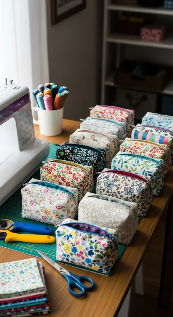 Use leftover fabrics to sew or glue simple zipper pouches. Ideal for storing small items like stationery, cosmetics, or travel essentials. Beginner-friendly and highly customizable with patterns or textures. Low-cost and practical, turning scraps into functional accessories. A stylish way to declutter while repurposing materials.