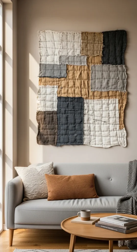 Piece together small fabric scraps into quilted blocks to craft wall hangings or small throws. Use simple stitching or glue for no-sew options. This technique adds depth, color, and texture to your room while making good use of leftover fabrics. Ideal for beginners, it’s both practical and decorative. Budget-friendly and perfect for filling empty spaces with charm.