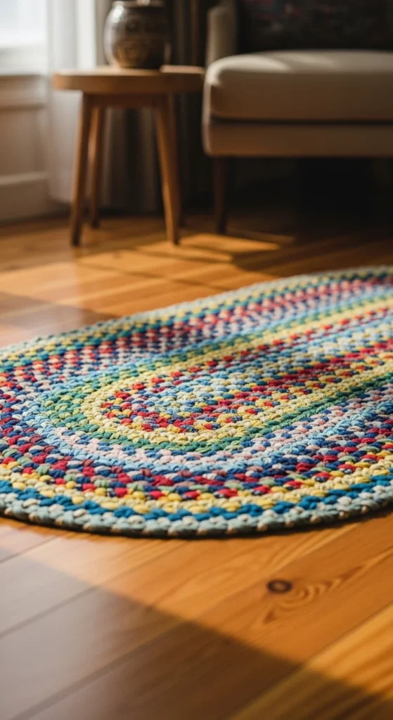 Twist or braid strips of scrap fabric to make vibrant rag rugs. Circular or rectangular designs add softness and texture to floors. Perfect for beginners, this upcycling project is simple and affordable. These rugs provide warmth underfoot and bring a handmade charm to any room. A practical and decorative solution that uses leftover fabrics creatively.