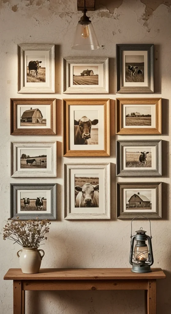 Wooden wall frames add a personal and cozy farmhouse touch. DIY frames allow you to choose finishes that match your decor. Neutral colors keep the look calm and timeless. Grouping frames creates a warm visual story. This idea blends memories with rustic style.