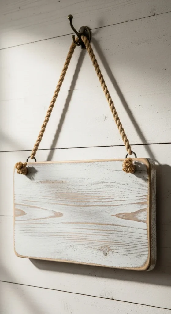 Distressed wood signs are a farmhouse classic. Creating your own allows full control over size, color, and texture. Soft neutral paint with light sanding gives a worn, rustic look. These signs add personality without overwhelming the space. They blend perfectly with other farmhouse elements.