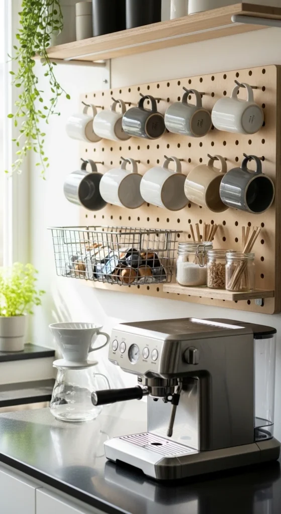 13. Pegboard Coffee Station