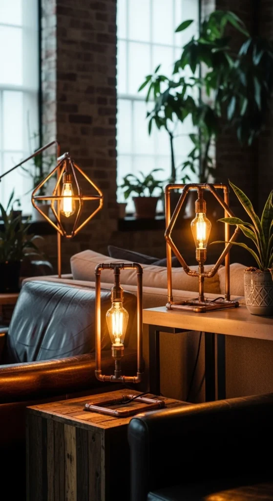 Use copper pipes to craft industrial-style table lamps with warm LED bulbs. These lamps offer both functional lighting and aesthetic appeal, blending rustic charm with modern design. Perfect for side tables or desks, they provide adjustable glow while serving as a stylish conversation piece. This DIY adds a professional touch without expensive materials.