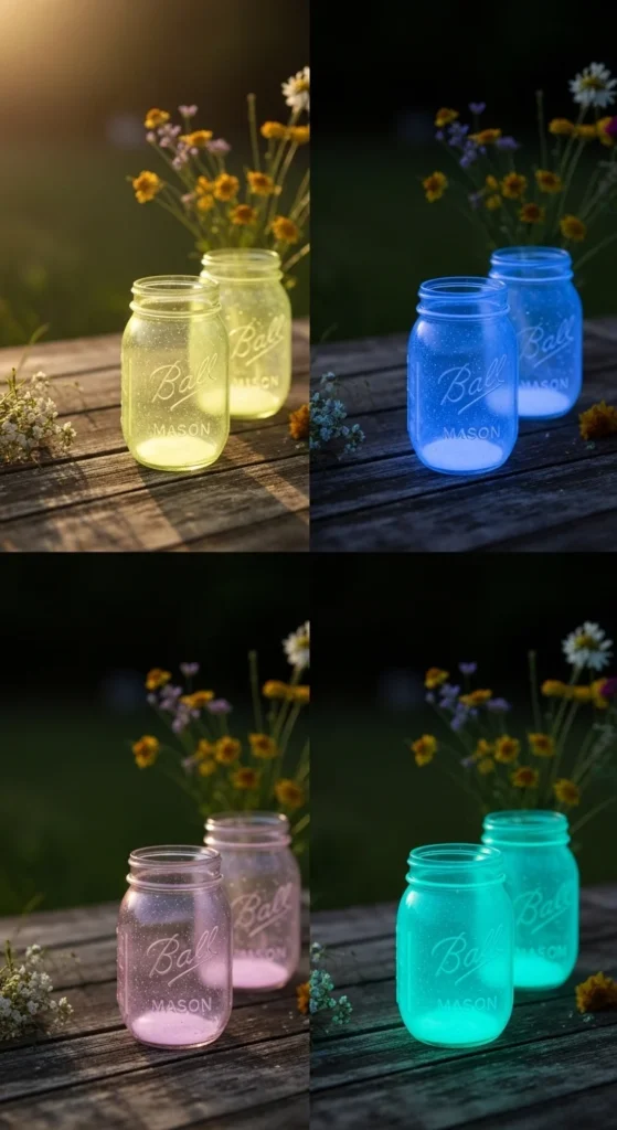 Use glow-in-the-dark pigments on jars or lanterns to create a subtle shimmer during the day that glows magically at night. This adds a unique, mystical quality to any room or nook. Perfect for kids’ rooms, reading corners, or themed décor, this DIY enhances ambiance and intrigue. It’s an imaginative twist on traditional jar lights.