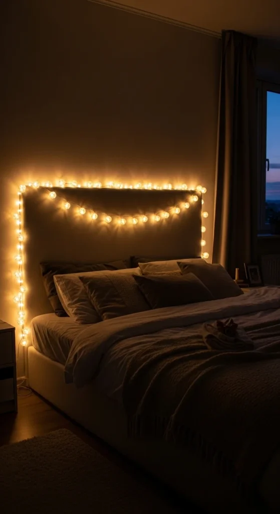 Turn your bedroom into a dreamy retreat by attaching fairy lights directly to your headboard. The gentle glow creates a starry effect, perfect for relaxing evenings or romantic settings. This low-cost idea instantly upgrades your sleeping area, adding charm without clutter. You can experiment with draping, weaving, or outlining for varied lighting intensity.