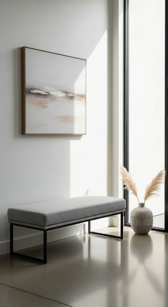 An upholstered bench brings both comfort and style into a modern home. DIY benches can be customized to fit narrow or small spaces. Clean lines and simple fabric choices keep the look polished. Neutral colors make it feel expensive. This piece works well in entryways or bedrooms.