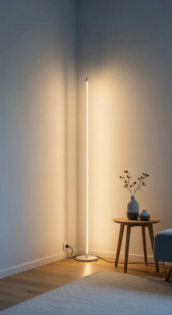 Lighting corners add warmth and luxury to a room. DIY lighting setups create a cozy yet modern mood. Soft ambient light enhances the space beautifully. Minimal fixtures keep it elegant. This idea feels thoughtful and high-end.