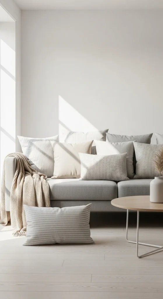 Neutral throw pillows refresh seating areas instantly. DIY covers allow fabric and color customization. Clean textures enhance the modern vibe. Mixing subtle tones adds depth without distraction. This small change feels polished and intentional.