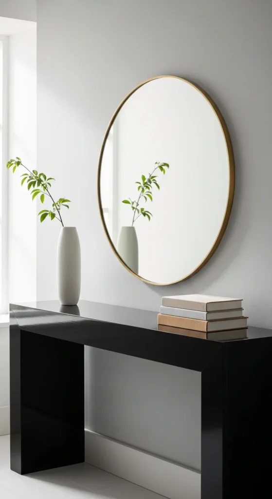 Console tables offer a perfect place for modern styling. DIY decor focuses on symmetry and balance. Simple shapes create a high-end look. Keeping items minimal enhances elegance. This setup makes entryways look designer-inspired.