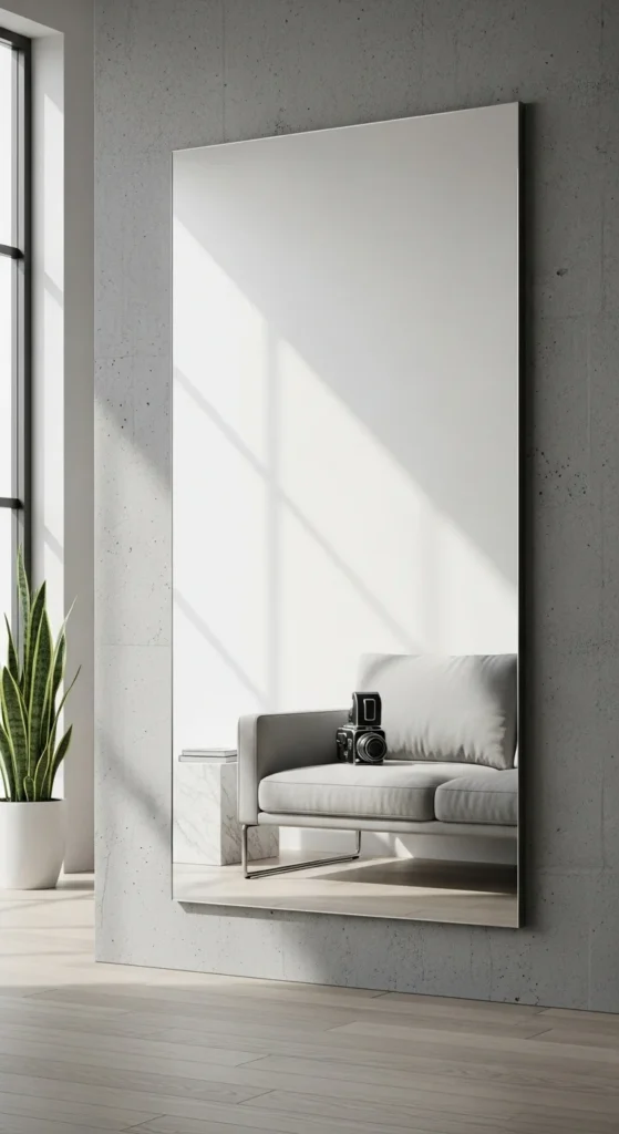 Frameless mirrors add luxury and brightness. DIY installation keeps costs low while looking custom. They visually expand the space. Clean edges match modern interiors perfectly. This idea feels both functional and stylish.