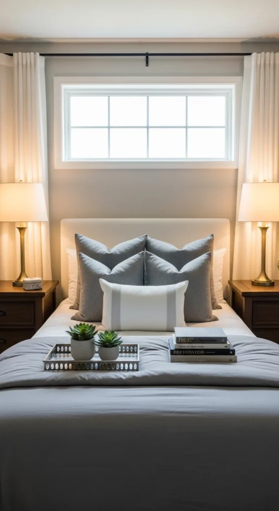 Place identical lamps, trays, and plants on both sides of the bed. Promotes visual symmetry and balance. Creates a calming, intentional sleep environment. Works for couples or anyone who loves structured aesthetics.