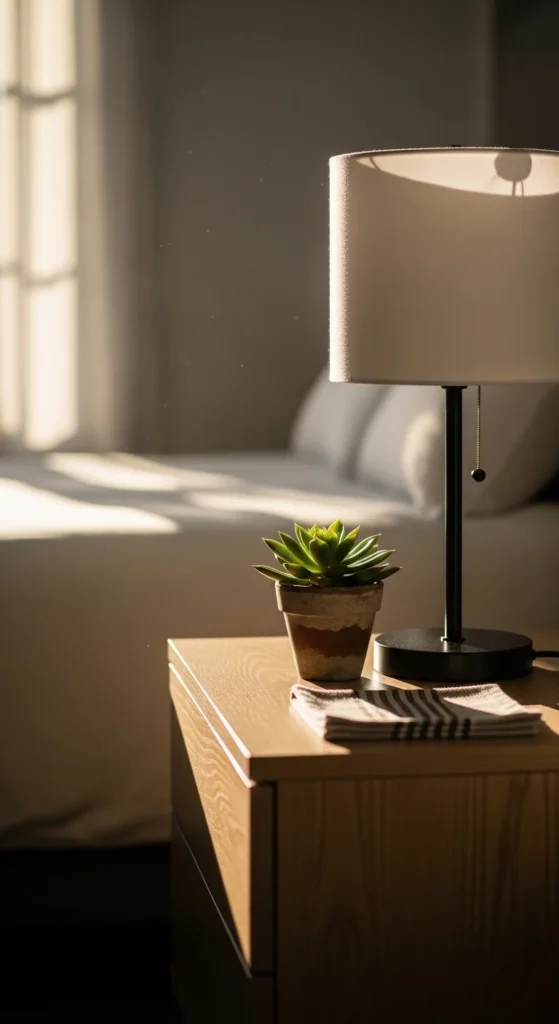 Limit objects to items: lamp, plant, personal object. Avoid cords and unnecessary clutter. Include one soft textile for warmth. This “cozy minimalism” creates a serene, curated bedside.