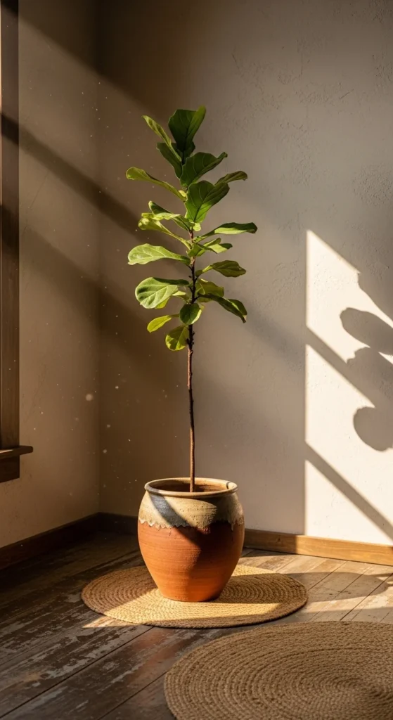 Floor plants instantly connect interiors to nature. DIY pot styling enhances the rustic feel. Clay or stone pots add earthy texture. This setup fills empty corners beautifully. It creates a calm and refreshing environment.