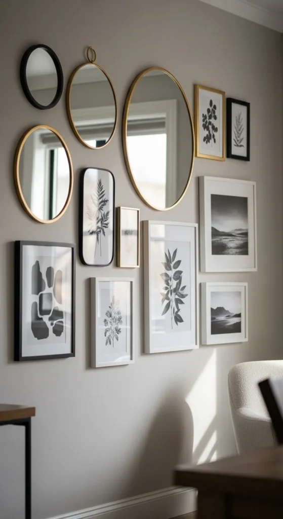 9. Mirror-Integrated Gallery Wall