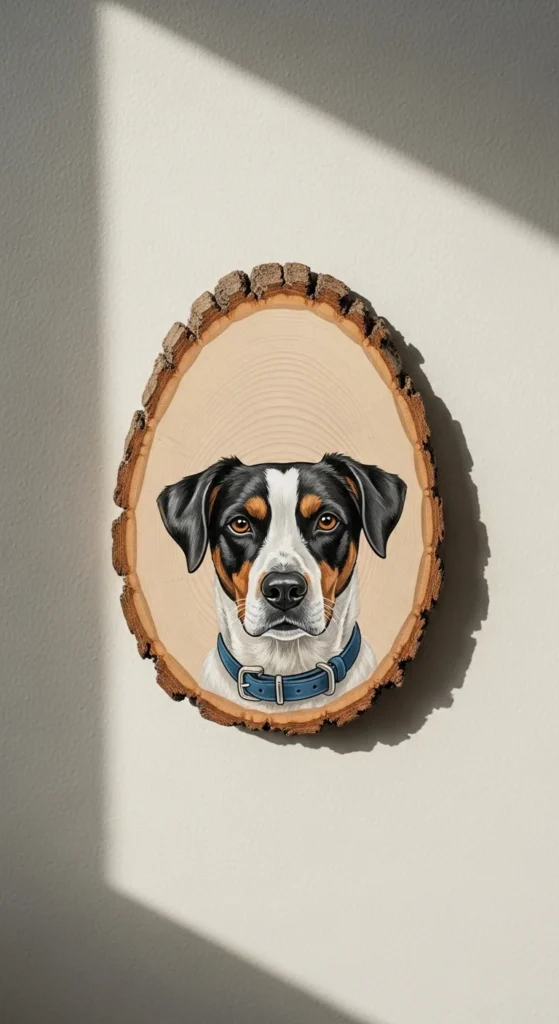 Pet portraits on wood slices are trending, especially on Etsy. Print or hand-paint your pet. Seal with UV finish to prevent fading. It’s personal, warm, and perfect for living rooms or hallways.