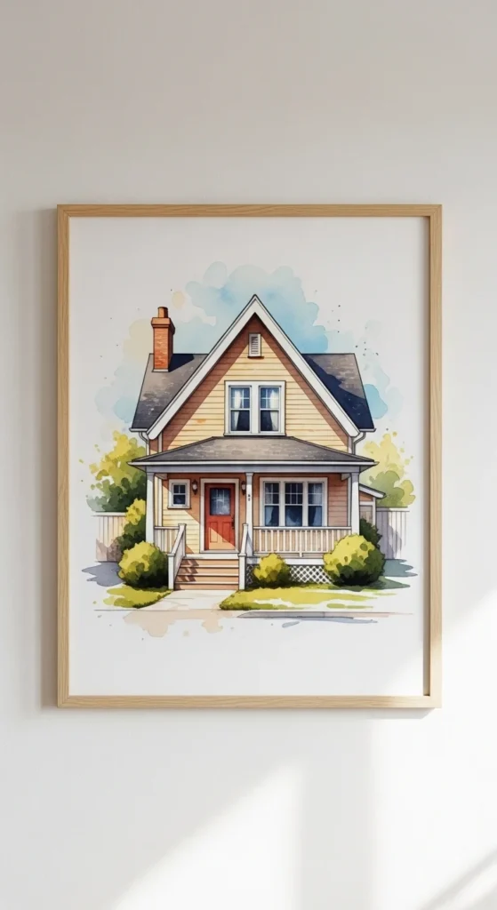 Apps like Brushstroke or Waterlogue convert house photos into painted prints. Print the artwork on quality paper and frame it. Perfect for personal gifts or meaningful wall art. Achieves a hand-painted look without needing painting skills.