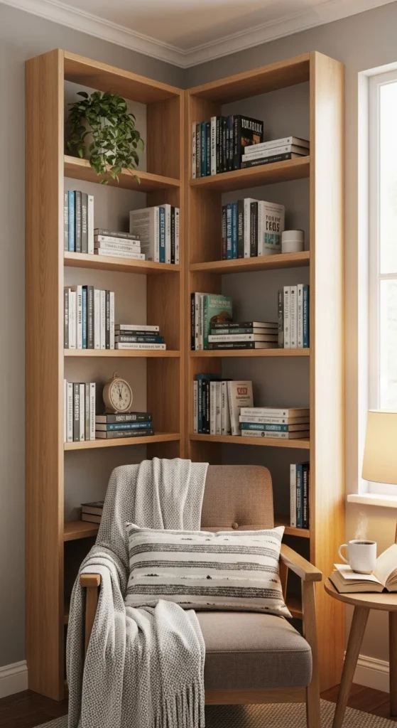 Wraparound shelves transform awkward corners into practical storage zones. This design provides continuous surface space across two connecting walls. Secure both sides into studs for balanced weight support. It’s perfect for books, décor, or even kitchen essentials. Corners become intentional design features instead of wasted space.