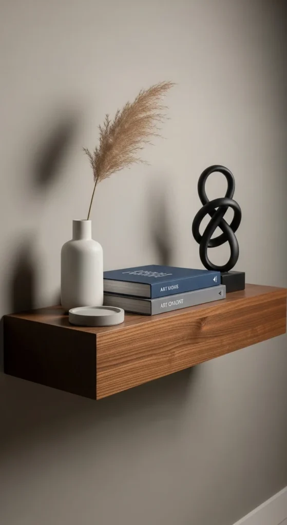 A single-plank shelf offers timeless simplicity. Choose sturdy brackets for load-bearing strength. Keep styling minimal for a clean, uncluttered look. This shelf works in almost any room of the house. Sometimes the simplest designs create the biggest impact.