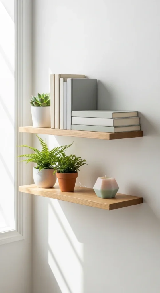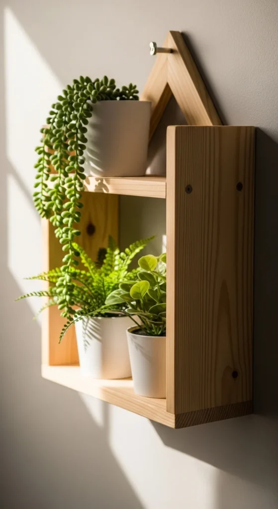 Triangle shelves fit neatly into unused corners. They save space while adding a decorative touch. Secure them with proper anchors to prevent pulling from the wall. These are perfect for small apartments. Corners become functional instead of wasted space.