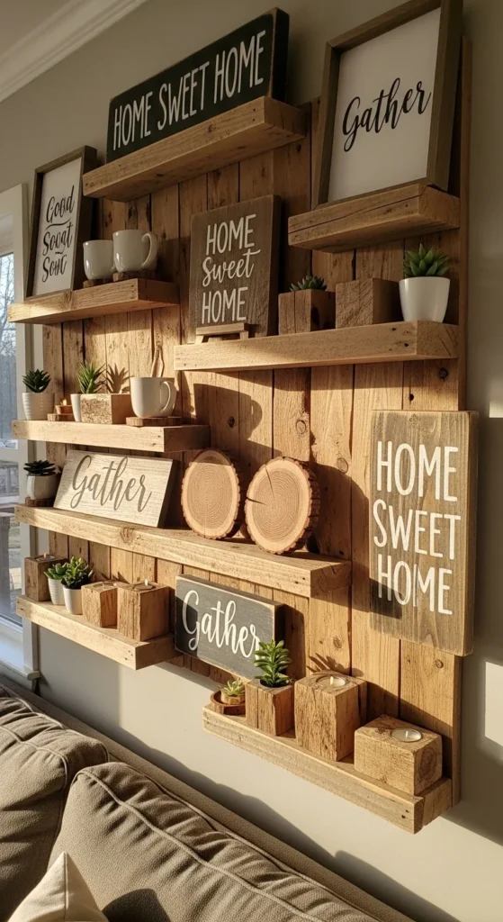 Use reclaimed boards to create a personalized rustic sign with stencils or wood burning. Paint or stain the background for contrast, then seal for durability. This farmhouse-style decor adds personality to living rooms or entryways. It’s budget-friendly and customizable to match any theme.