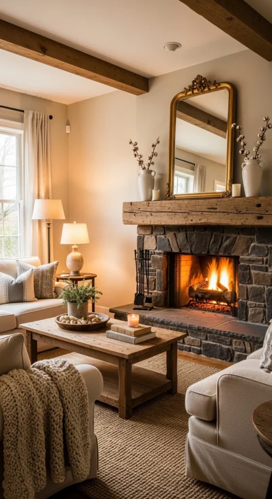 Install a reclaimed beam above your fireplace for a bold rustic statement. The natural imperfections enhance its authentic charm. This upgrade transforms a plain wall into a cozy focal point. Salvaged wood keeps costs lower while adding timeless appeal.