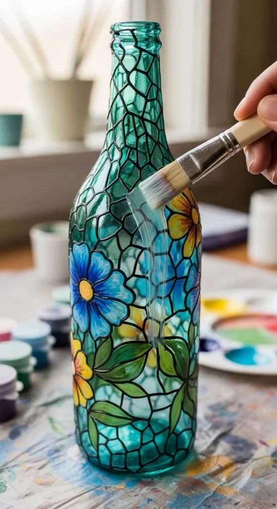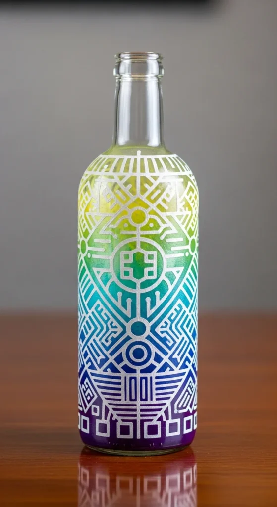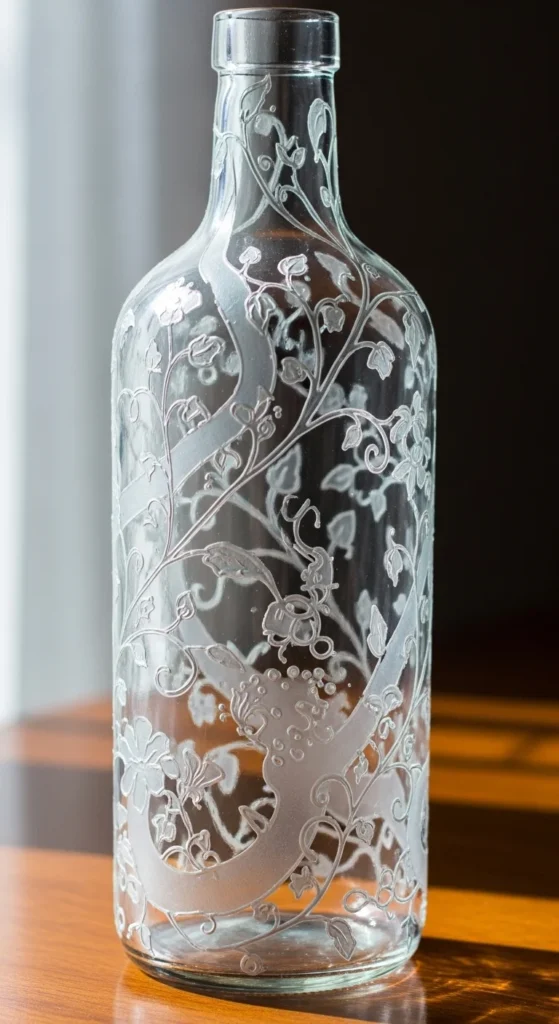 Etching adds depth and texture to painted bottles. You can combine etching cream with painted designs for a raised effect. This technique creates a professional, decorative look. Etched bottles are ideal as gifts or elegant decor.