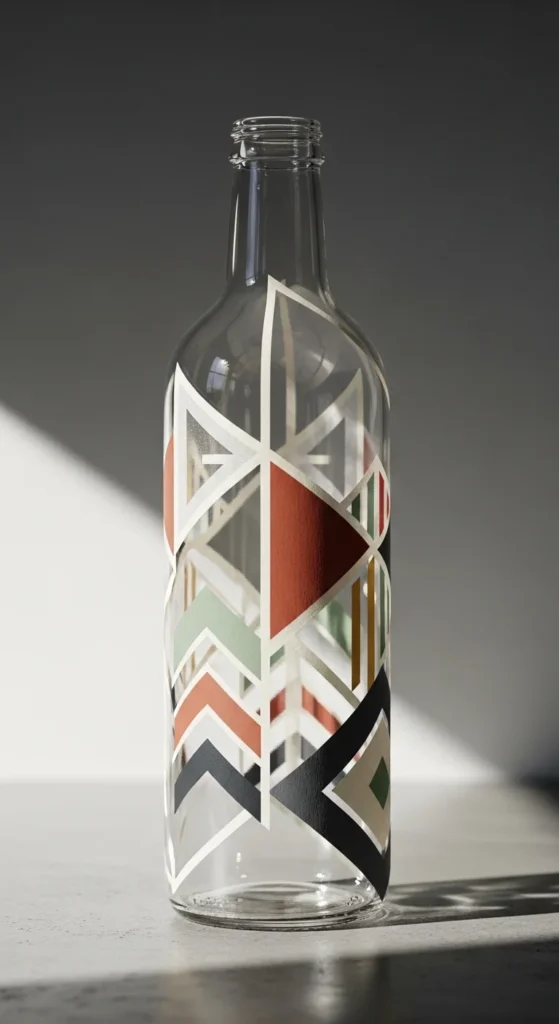 Masking tape helps create clean geometric patterns on glass bottles. Apply tape in different shapes before painting the surface. Once the paint dries, remove the tape to reveal crisp lines. This design gives a modern and artistic look.