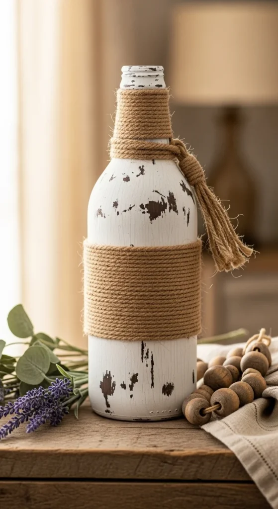 Combining paint with rope wrapping adds texture to bottle crafts. After painting the bottle, wrap jute rope around the neck or body. This creates a rustic farmhouse appearance. The mix of materials makes the bottle feel warm and handcrafted.