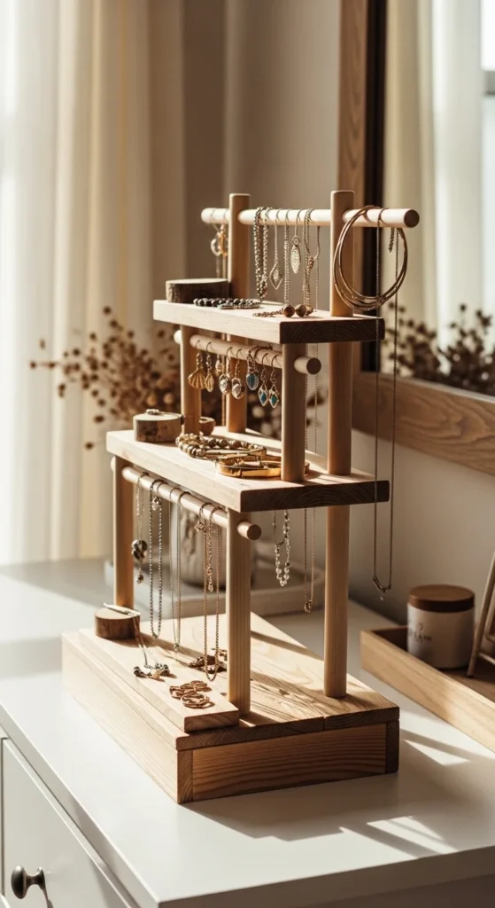 10. Tiered Jewelry Stand from Wood Scraps