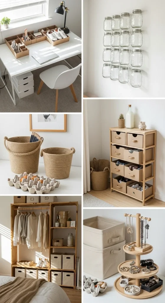 DIY organizers turn everyday household items into functional, stylish storage solutions. From desks to closets, these projects help you declutter, save money, and enjoy creative, eco-friendly crafting. Whether it’s cardboard sliding drawers, mason jar wall grids, or rope-wrapped buckets, there’s a project for every home and every skill level.