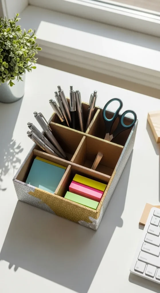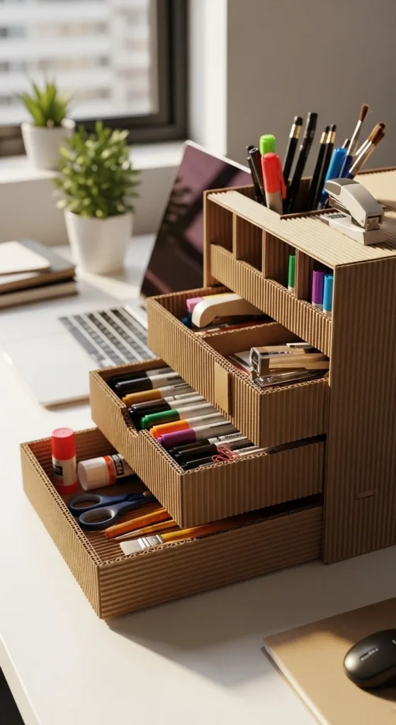 1. Multi-Compartment Cardboard Desk Organizer