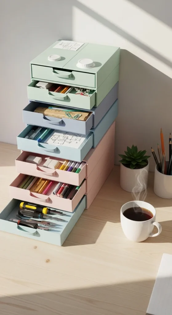 Use Case: Store office supplies, stationery, or small tools.