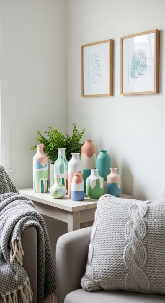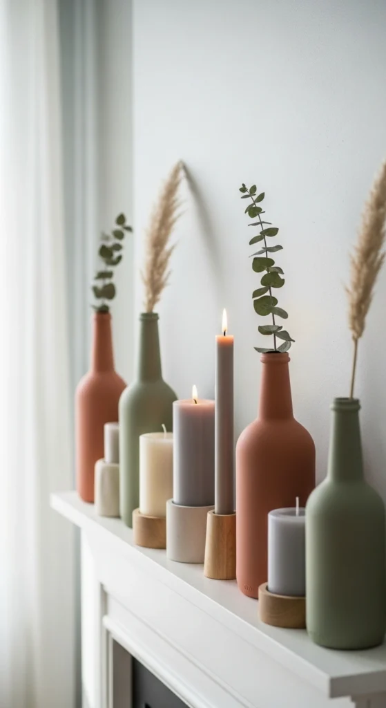 - Glass bottles painted or wrapped with twine