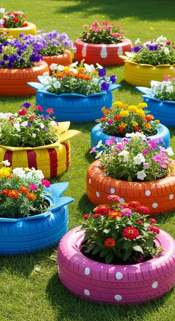 9. Tire Flower Planters (Outdoor Only)