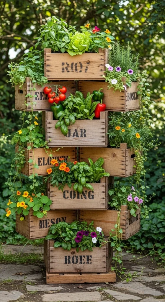 7. Wooden Crate Cascade Garden