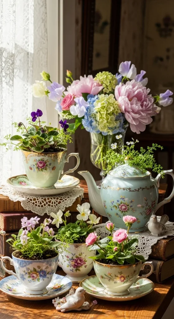 6. Vintage Tea Garden with Teacups