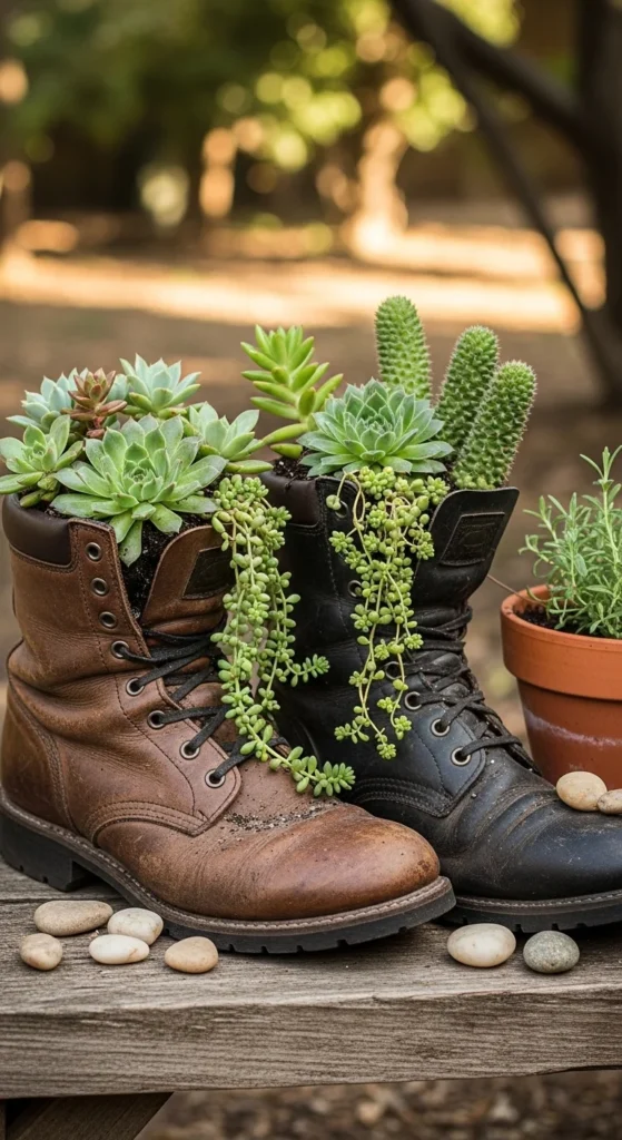 5. Boot Planter Parade (Quirky Succulents)