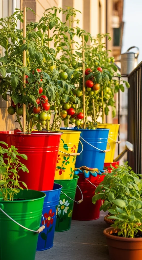 Buckets work great for larger plants like tomatoes.
