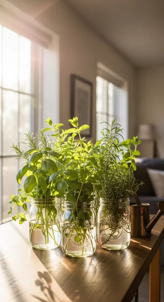 3. Mason Jar Windowsill Herb Haven