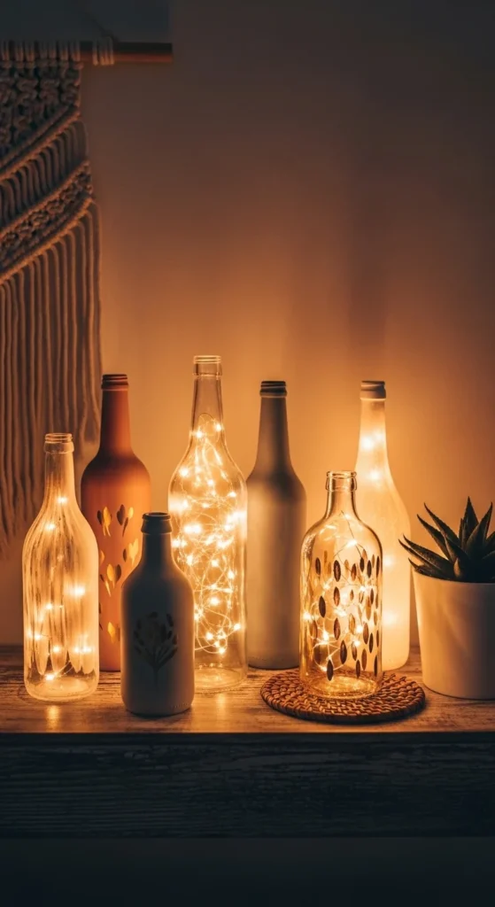 One of the most popular DIY upgrades is placing LED fairy lights inside painted bottles.