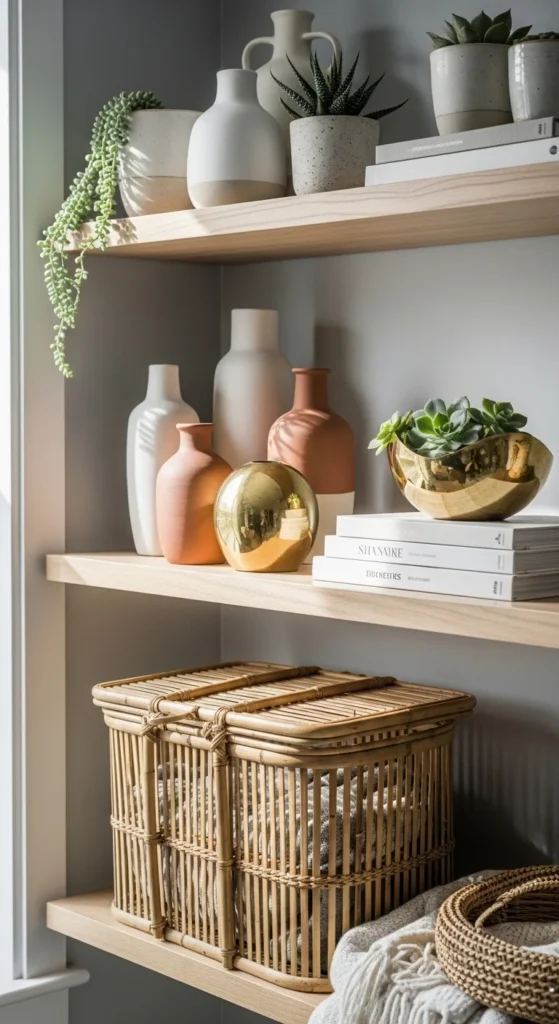 This step-by-step guide combines layering, the rule of three, height variation, and negative space so you can style your shelves like a pro even if you’re a beginner.