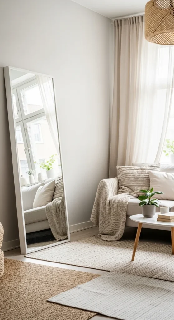 Mirrors reflect light and make rooms feel larger.